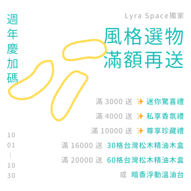 3. 滿額贈品恕不累計贈送(限單筆訂單)。限量精選贈品,贈完為止,Lyra Space保留修改贈品權利。